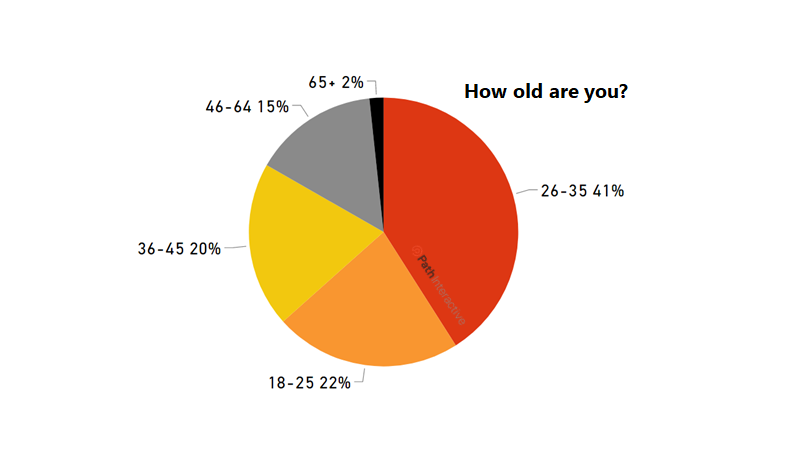 Out of 1,100 respondents, 70% of live in the United States, 21% in India, and 5% in Europe. 63% of respondents are between the ages of 18 and 35, and 17% are over the age of 46. All respondent data is self-reported.