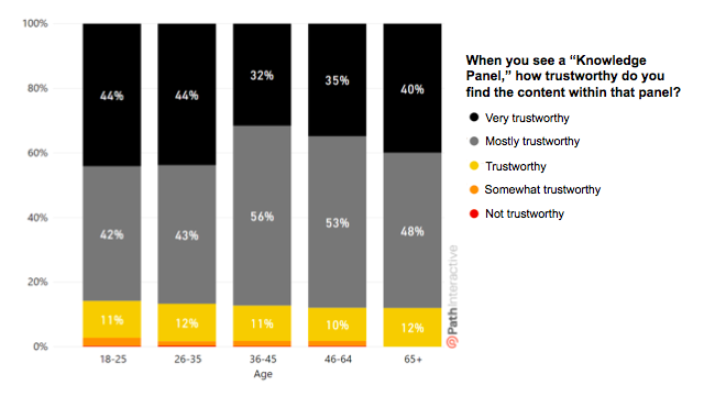 For Knowledge Graph results, the results are less conclusive when segmented by age. 95% of respondents across all age groups find the Knowledge Panel results to be at least “trustworthy.”