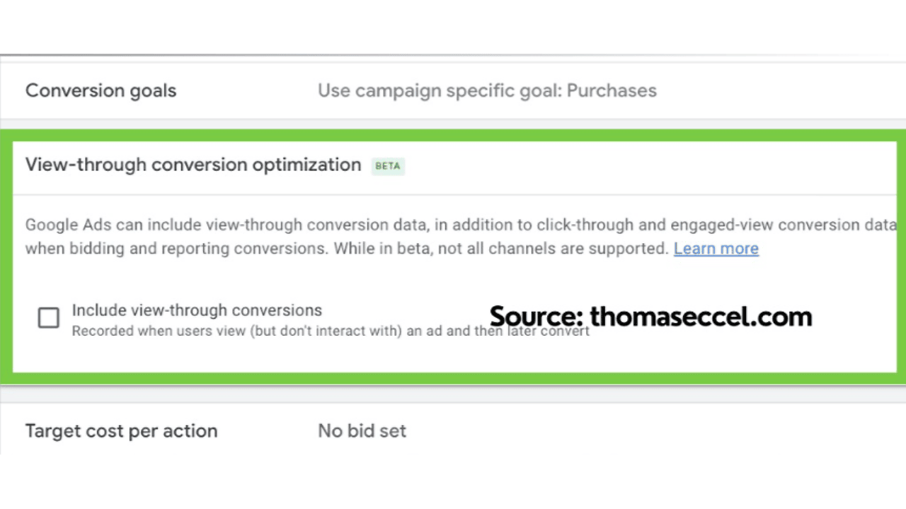 What’s new. This test was spotted last week. It adds a setting allowing advertisers to include view-through conversions (VTCs) in their bidding models.