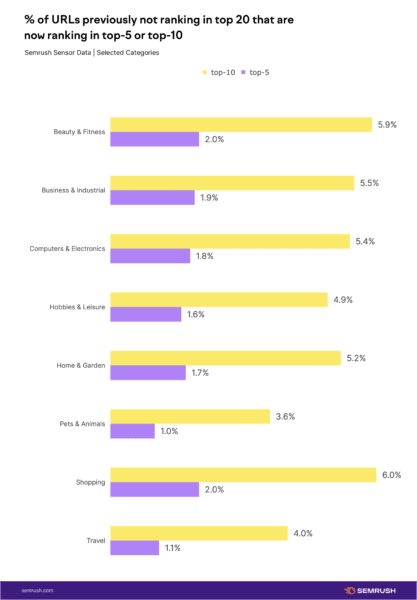 RankRanger compared this July update with the December update, not the March one. So keep that in mind, since Semrush compared it to the March update, which was the most recent one we had prior to this July update.
