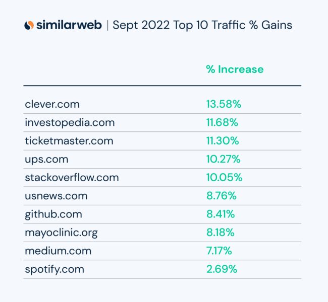 Now that RankRanger is owned by Similarweb, they have Similarweb data to show top winners and losers as well: