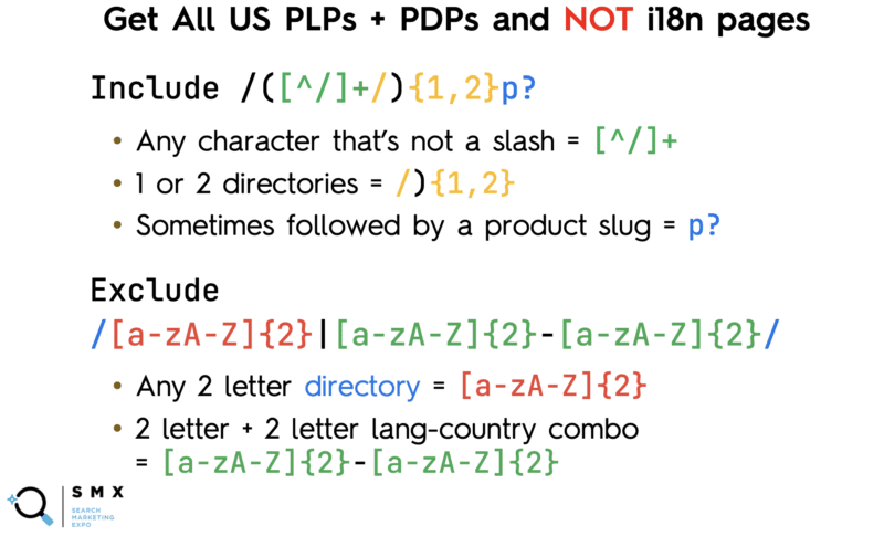 To get all U.S. product landing + detail pages (not i18n pages), they came up with the following regex strings:
