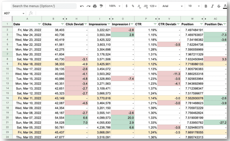 • Aleyda Solis’ free dashboard, which uses GSC data to easily identify potential rankings changes in recent days from the Google Core Update.