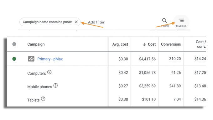 Note: This report is not available within a Performance Max campaign, you’ll need to access it from the All Campaigns tab and filter your PMax campaigns only.