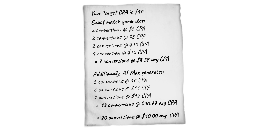 Why CPA/ROAS may look different. AI Max specializes in incrementality, and incremental conversions often cost more than the “core” conversions captured by tightly curated keywords.