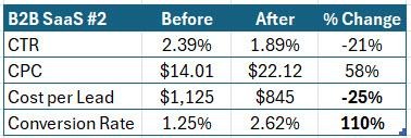 However, the campaigns still saw a 25% decrease in cost per lead, and conversion rates more than doubled.