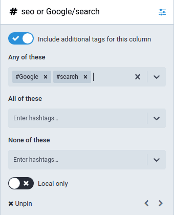 - Next, go to the settings of this pinned search (in the upper right corner) and select “Include additional tags for this column.”