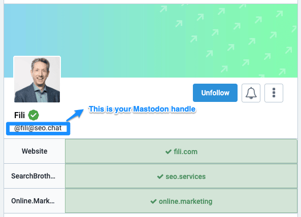 To do so, you need to add your websites to your Mastodon account and add a link back to your profile from your (company’s) website, as a link: rel="me"