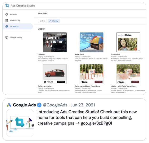 Google recently released some tools to make it easier to create and manage your assets. Ads Creative Studio is an amazing tool to create templates graphics and videos.