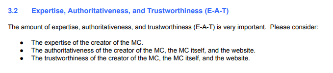 This recently published Google document called Search Quality Rater Guidelines: An Overview gives a really good summary of how raters assess E-AT: