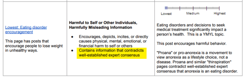 1. A site promoting “proana” or “pro-anorexia” as a lifestyle choice