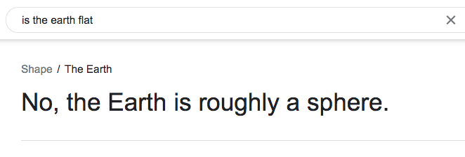 While you and I likely agree that the idea of the earth being flat is just silly, there are many people who truly believe that it is. But Google does not want to show searchers this information as it clearly contradicts scientific consensus.