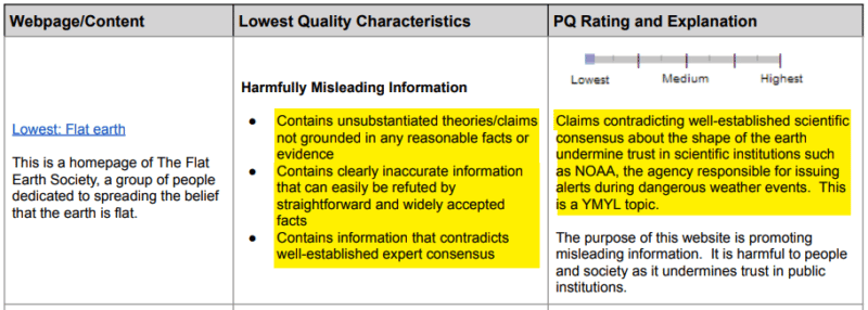 Again, for YMYL topics the raters are told to assess whether the page aligns with medical, scientific or even historical consensus.