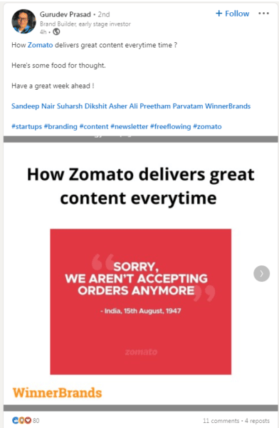Most marketers love what more prominent brands do in their marketing. They would post some tweets or carousels dedicated to the great branding done by the brands.
